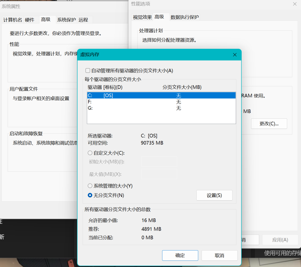 关闭Windows虚拟内存。